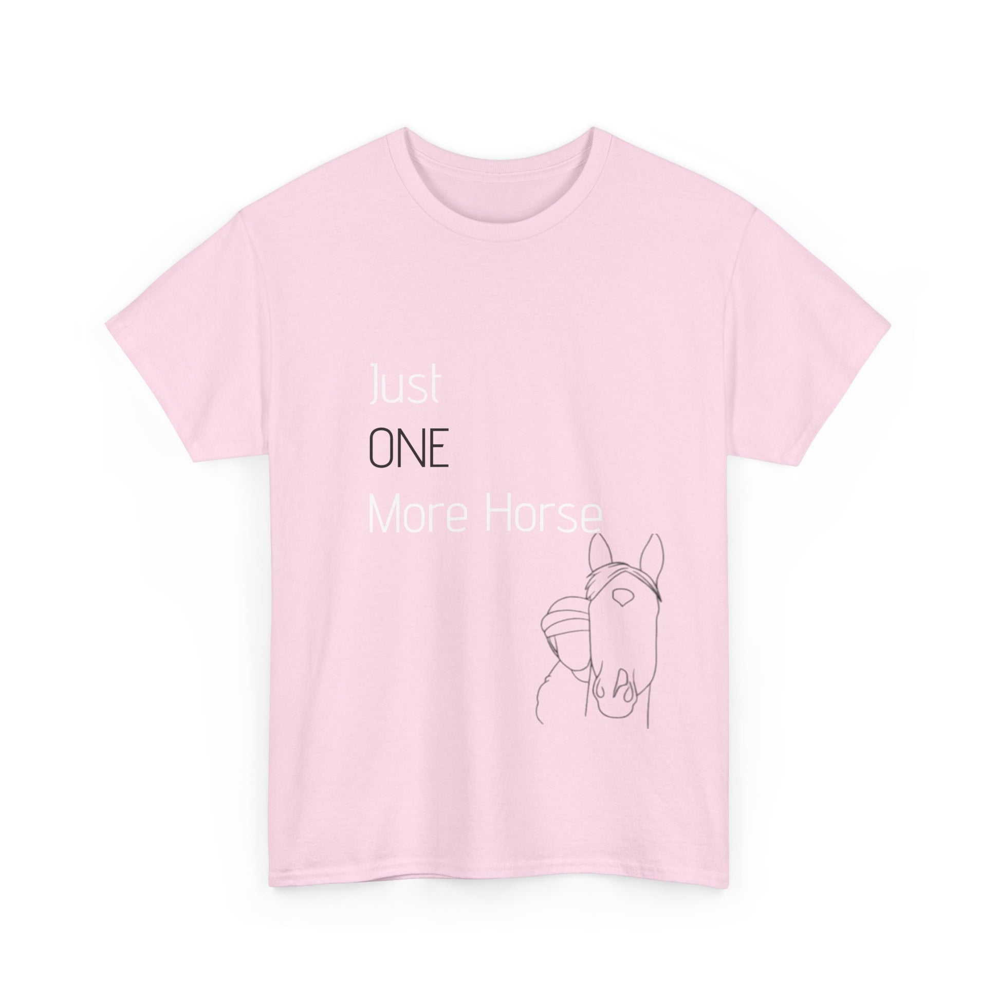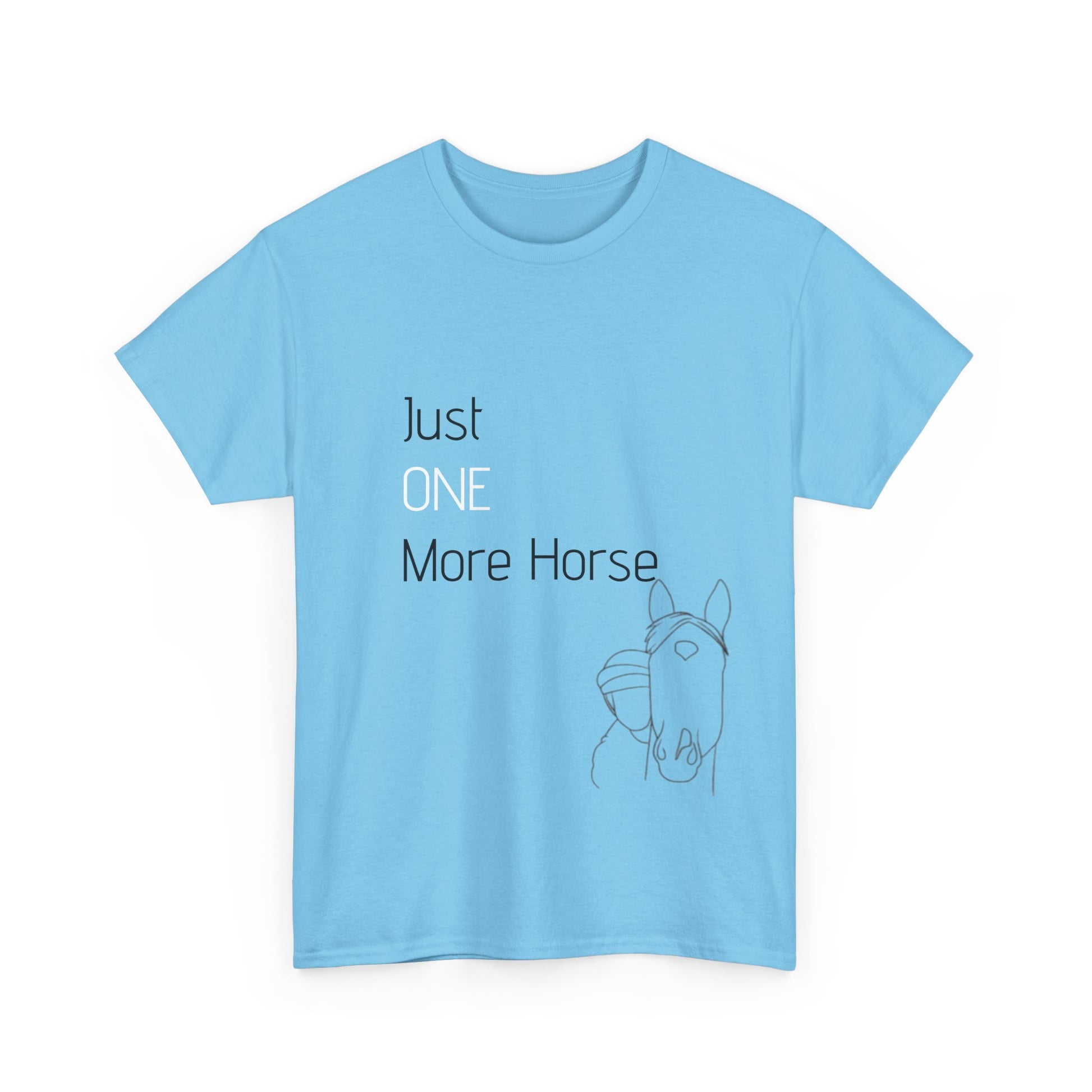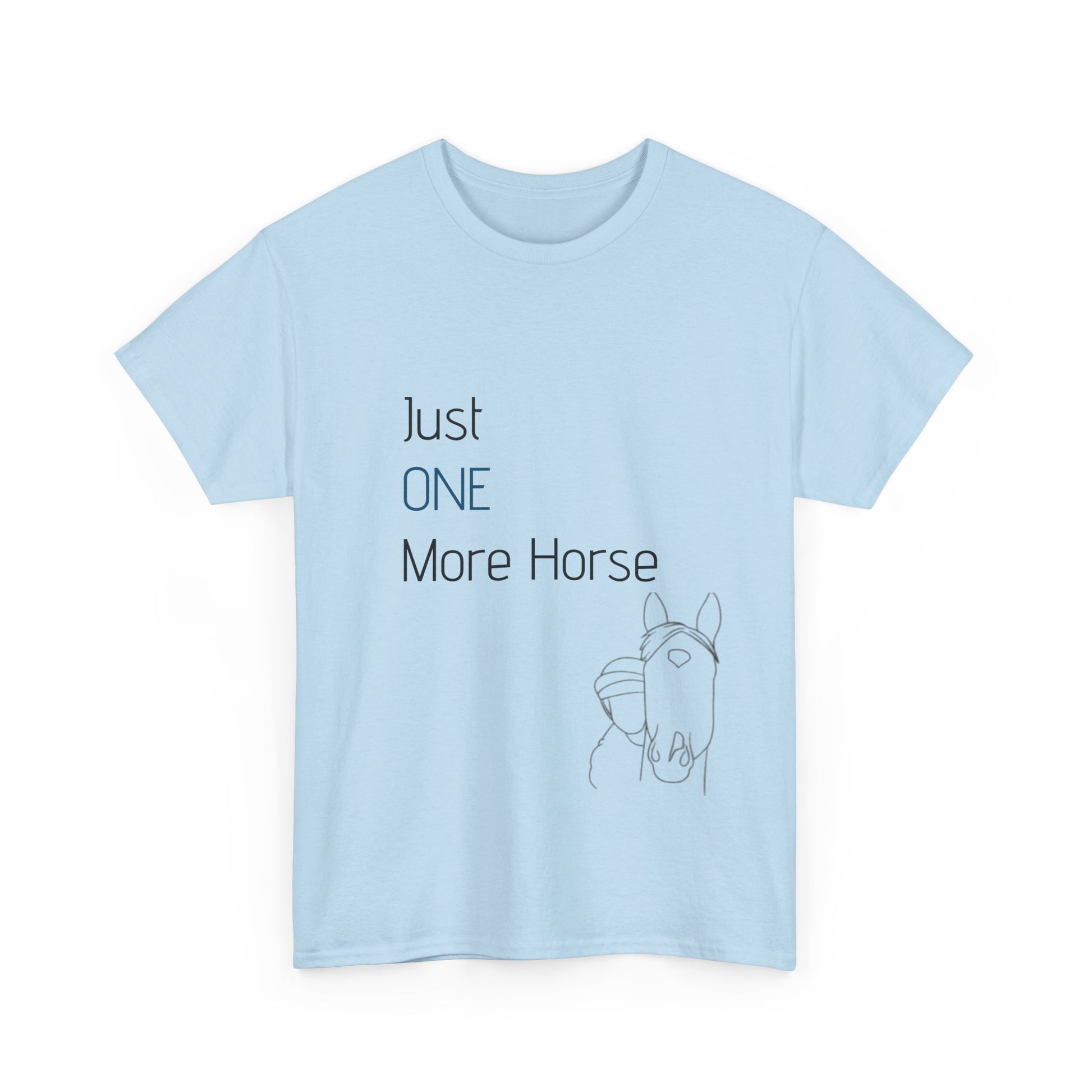 A classic and comfy addition to anyone's wardrobe, this T-shirt features a unique 'One more horse' design because we always need more! Perfect for casual wear or as a statement piece for horse lovers and equestrians. Ideal for everyday wear, casual outings, or horse-themed events and competitions.